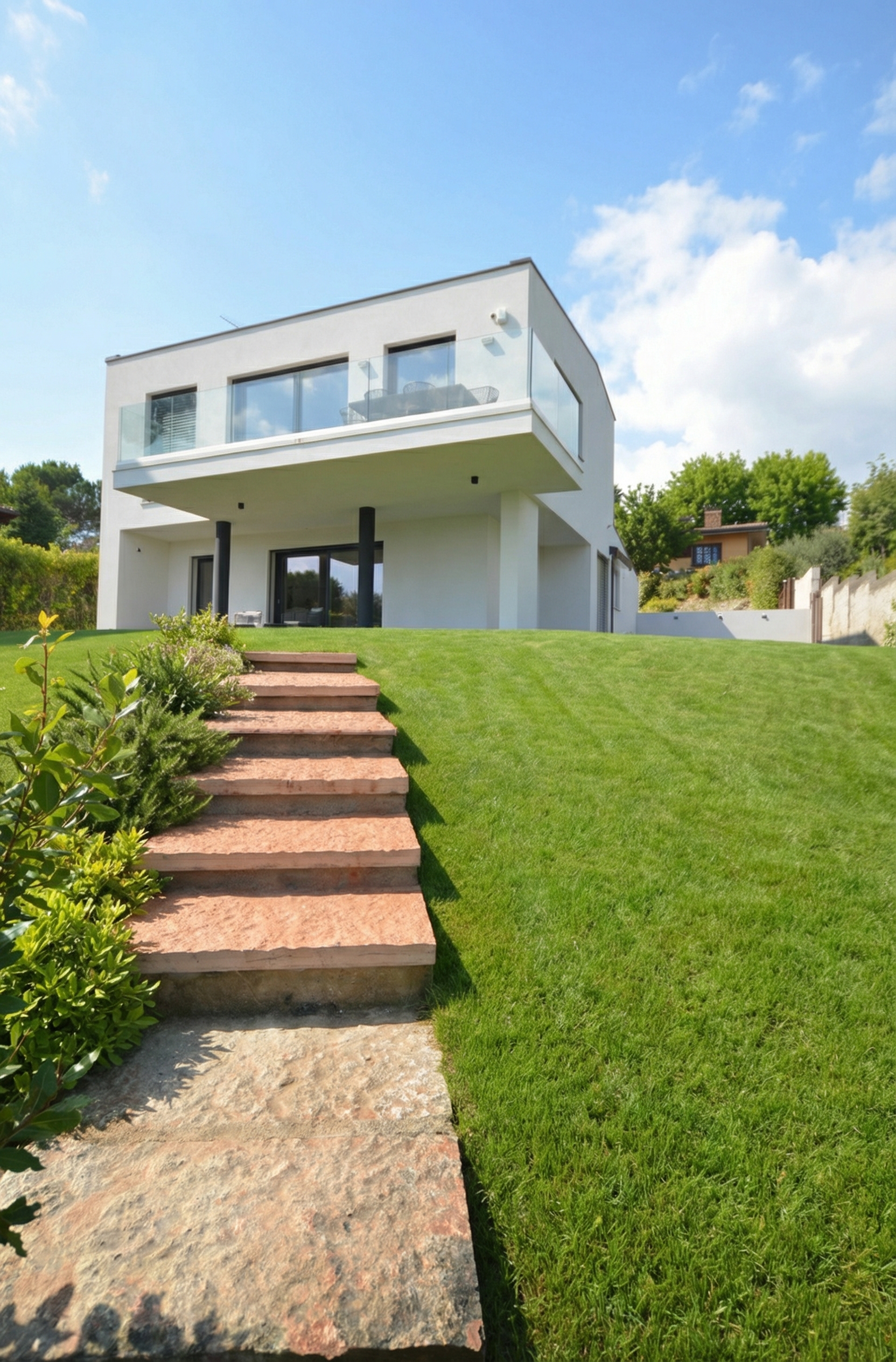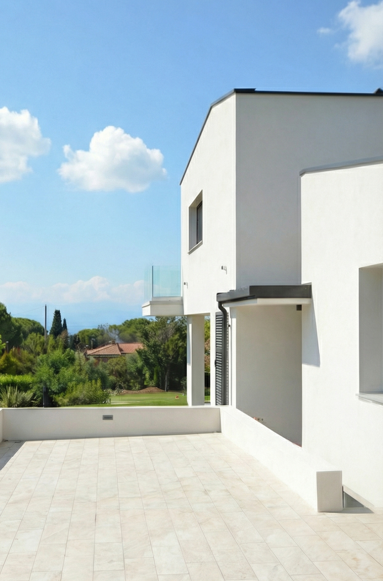Il rapporto con un contesto fatto di ville fronte lago con una vista parziale al piano terra e una conformazione architettonica ormai obsoleta (vedi la foto del “prima”) per il trend di questa zona di Padenghe sul Garda che sempre più sta andando verso il moderno, è stato catalizzatore di idee per questo progetto: demolire una porzione di abitazione, portare un ampliamento su due piani con al piano primo la vista lago totale, scandire meglio i due volumi che si generano e articolare le forme di una casa moderna con tetti senza sporti.