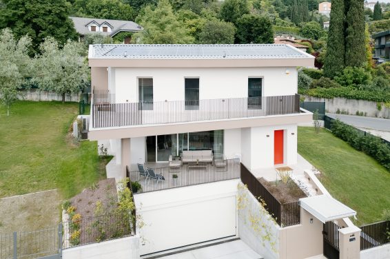 Il progetto riguarda una bifamiliare nel cuore di Gussago, in provincia di Brescia, che abbiamo realizzato con studio dell’involucro e dei sistemi costruttivi, con cura dell’ingegnerizzazione anche in relazione agli impianti con domotica per quanto riguarda la parte elettrica e idraulica, le pompe di calore, la VMC, la deumidificazione, il recupero del calore.